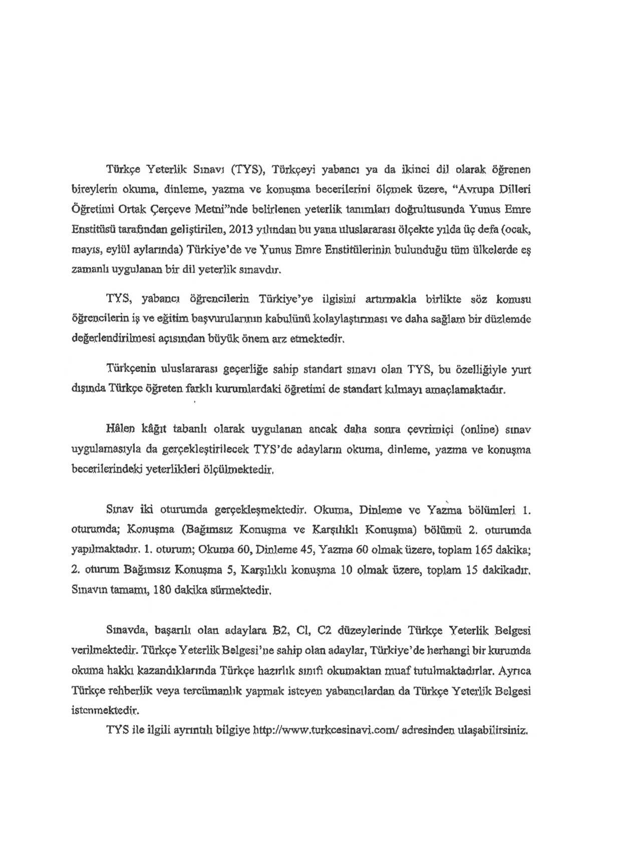 Bir sonraki Türkçe Yeterlik Sınavı 28 Mayıs 2016 tarihinde, diğer sınav merkezlerinin yanı sıra, Viyana Yunus Emre Türk Kültür Merkezi’nde de gerçekleştirilecek olup, sınav hakkında ayrıntılı bilgiye ekli dosyadan ve www.turkcesinavi.com sayfasından erişim sağlanması mümkündür.